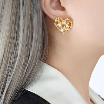 Material: Stainless steel, Gold plating, Pearl imitation.