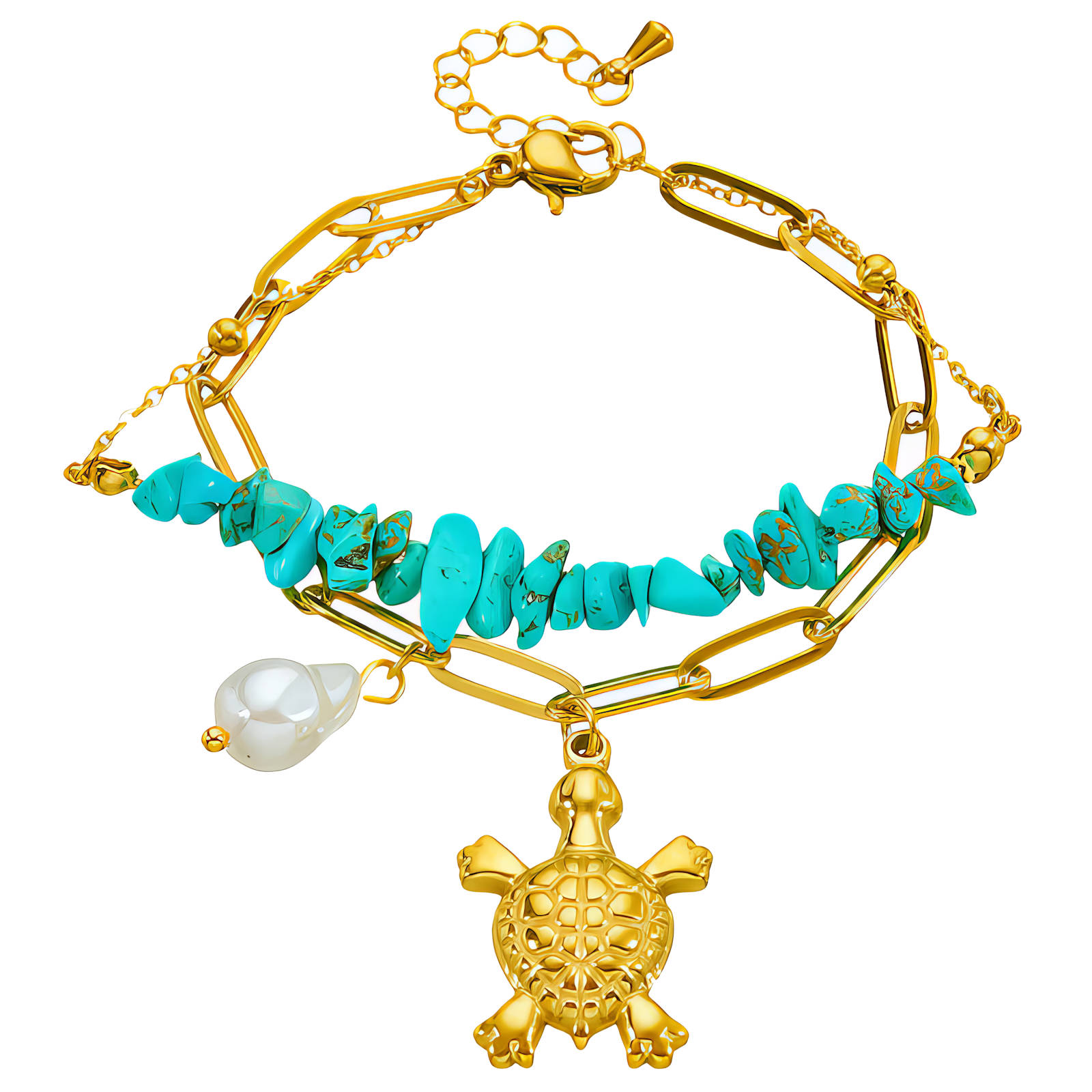 Material: Pearl imitation, Gold plating, Stainless steel.