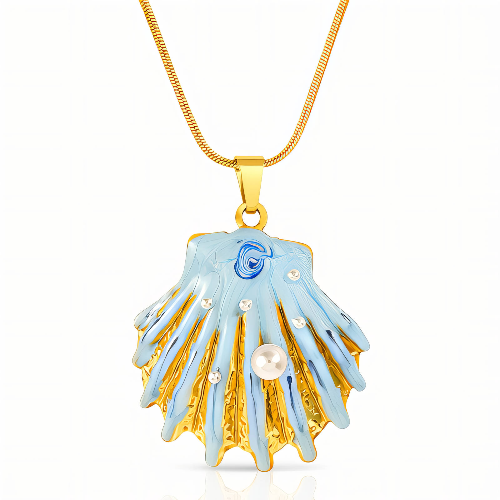 Material: Gold plating, Enamel, Pearl imitation, Stainless steel.