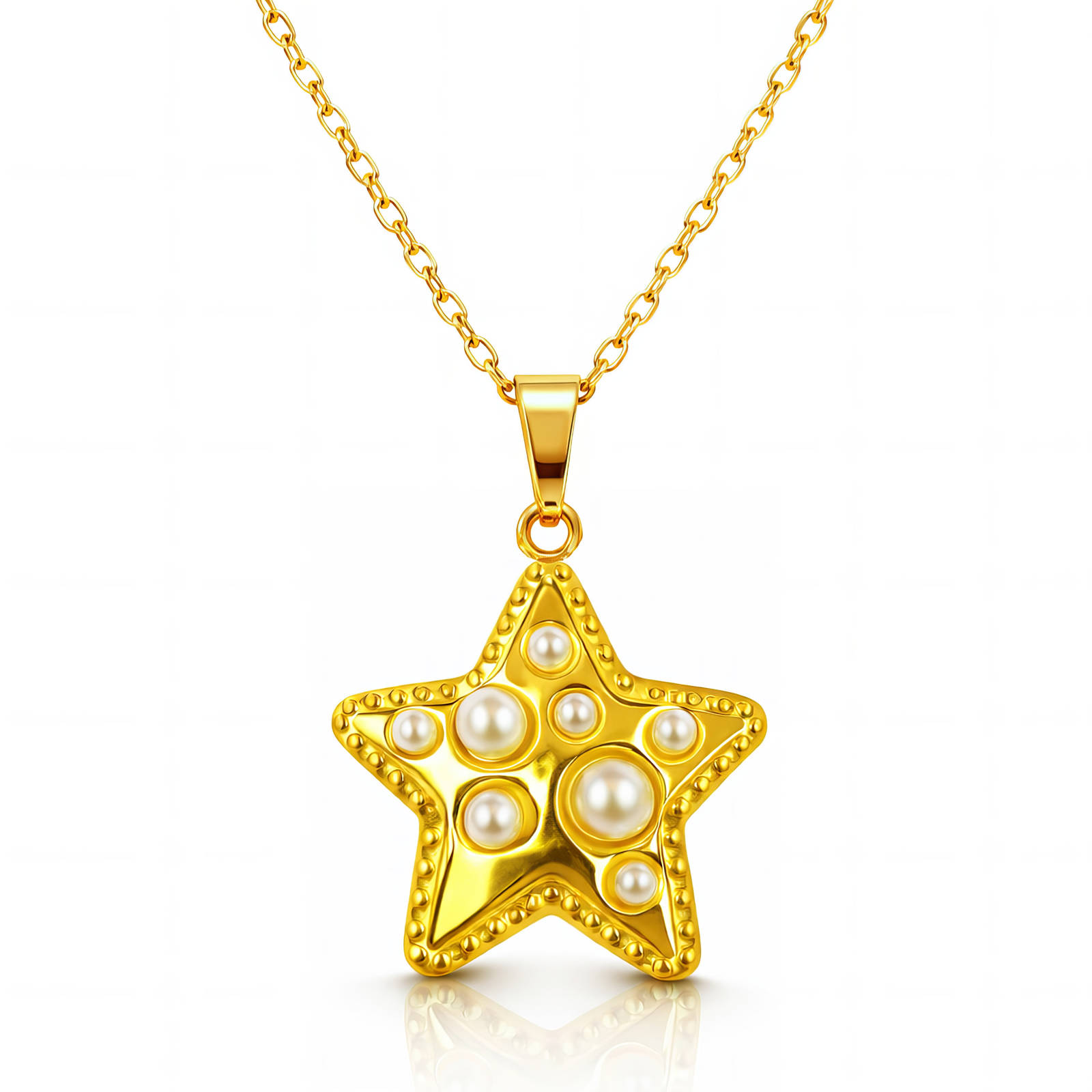 Material: Pearl imitation, Gold plating, Stainless steel.